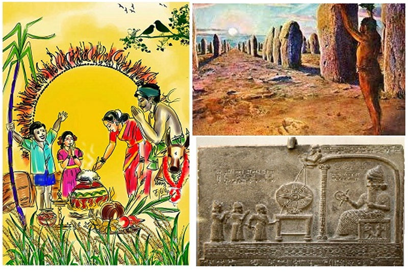 மனிதனின் அறிவு வளர்ச்சி, மிக பெரிய அளவில் அவனை வேளாண் வளர்ச்சிக்கு கொண்டு சேர்த்தது. இதன் தொடர்ச்சியாக வேளாண் வளர்ச்சிக்கும், தன்னுடைய தேவைகளுக்கும் காட்டில் வாழ்ந்த விலங்குகளை பழக்கினான். தன் வேளாண் வளர்ச்சிக்கு இயற்கையின் தயவுகள் தேவை என்பதால், சூரியனை பயபக்தியுடன் வணங்கி வந்தான் மேலும், விலங்குகளுக்கு நன்றி செய்யும் பொருட்டும் அதனையும் வணங்க ஆரம்பித்தான். அதற்காக வருடா வருடம் விழா எடுத்தான்.